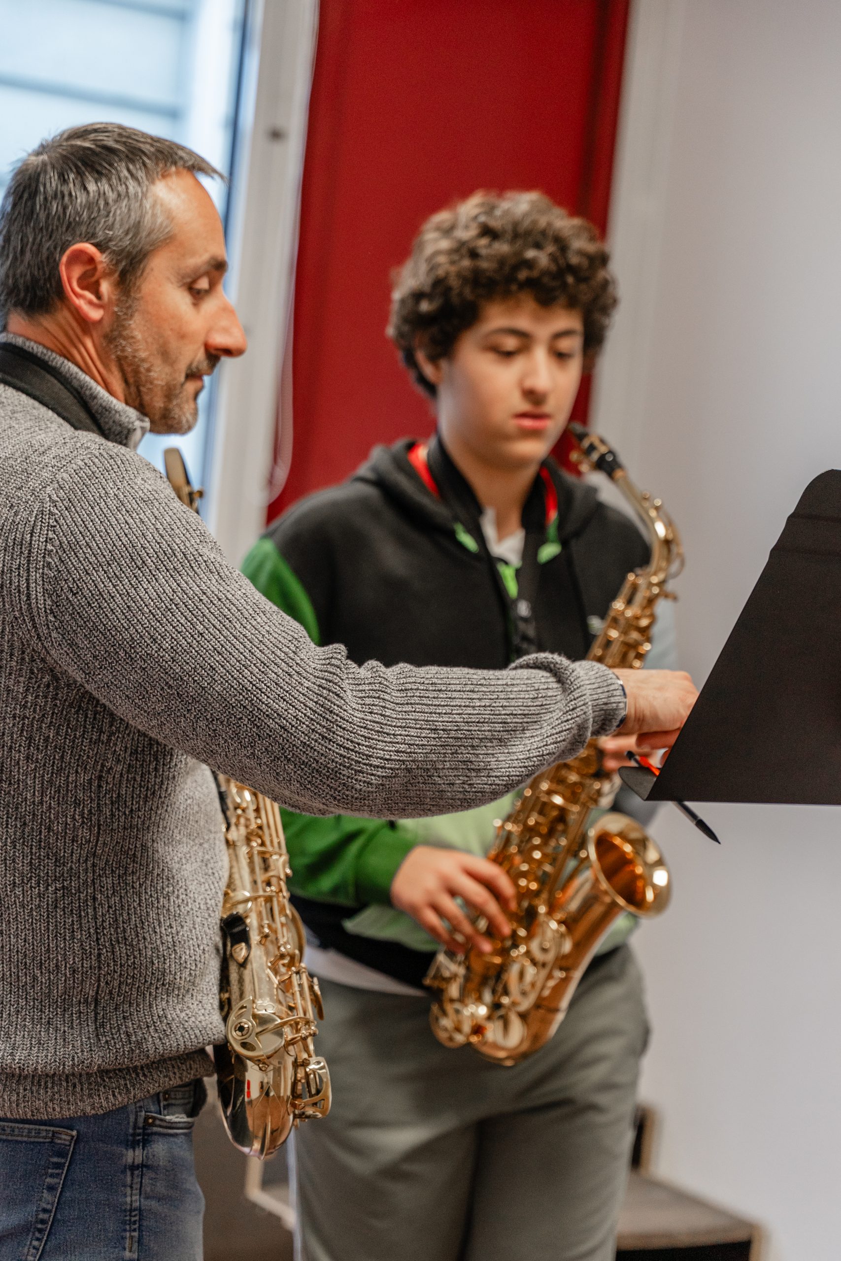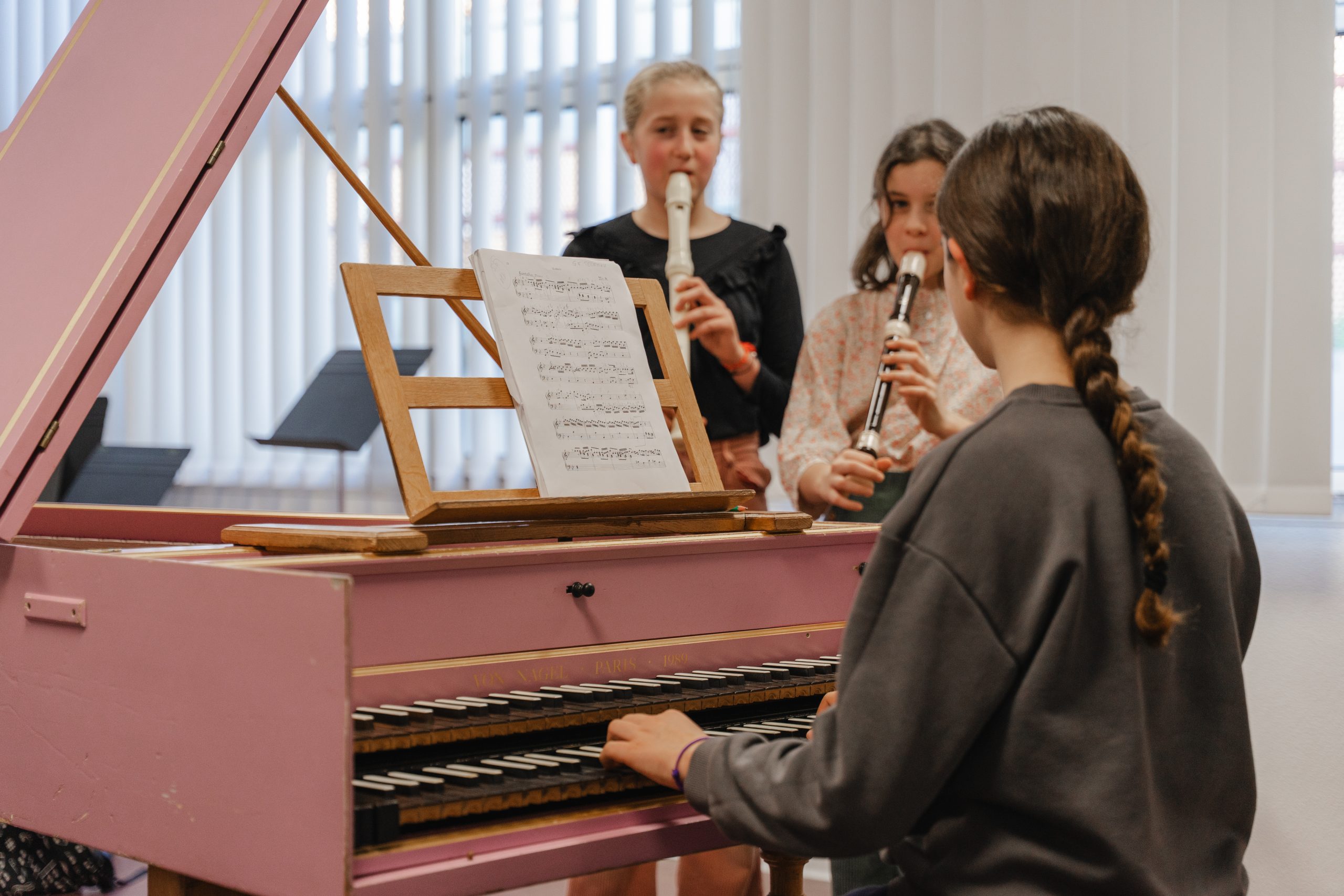 Accès : demande d’inscription en juin, essai d’instruments et choix multiple avec priorité, test d’entrée en septembre et accès corrélé aux places disponibles dans les différentes classes d’instrument.